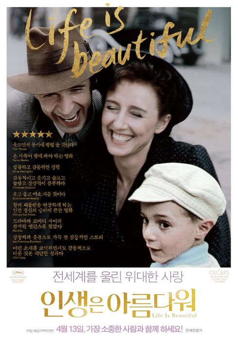 이탈리아의 명배우이자 감독인 로베르토 베니니(Roberto Benigni)가 연출하고 주연을 맡은 인생은 아름다워(La vita è bella)는 유머와 가족애로 가득 찬 전반부와, 전쟁이라는 비극적 상황이 대비를 이루는 후반부가 인상적인 영화입니다. 개봉 당시 전 세계의 극장에서 큰 반향을 불러일으키며, 지금까지도 수많은 관객의 인생 영화로 손꼽히고 있습니다.